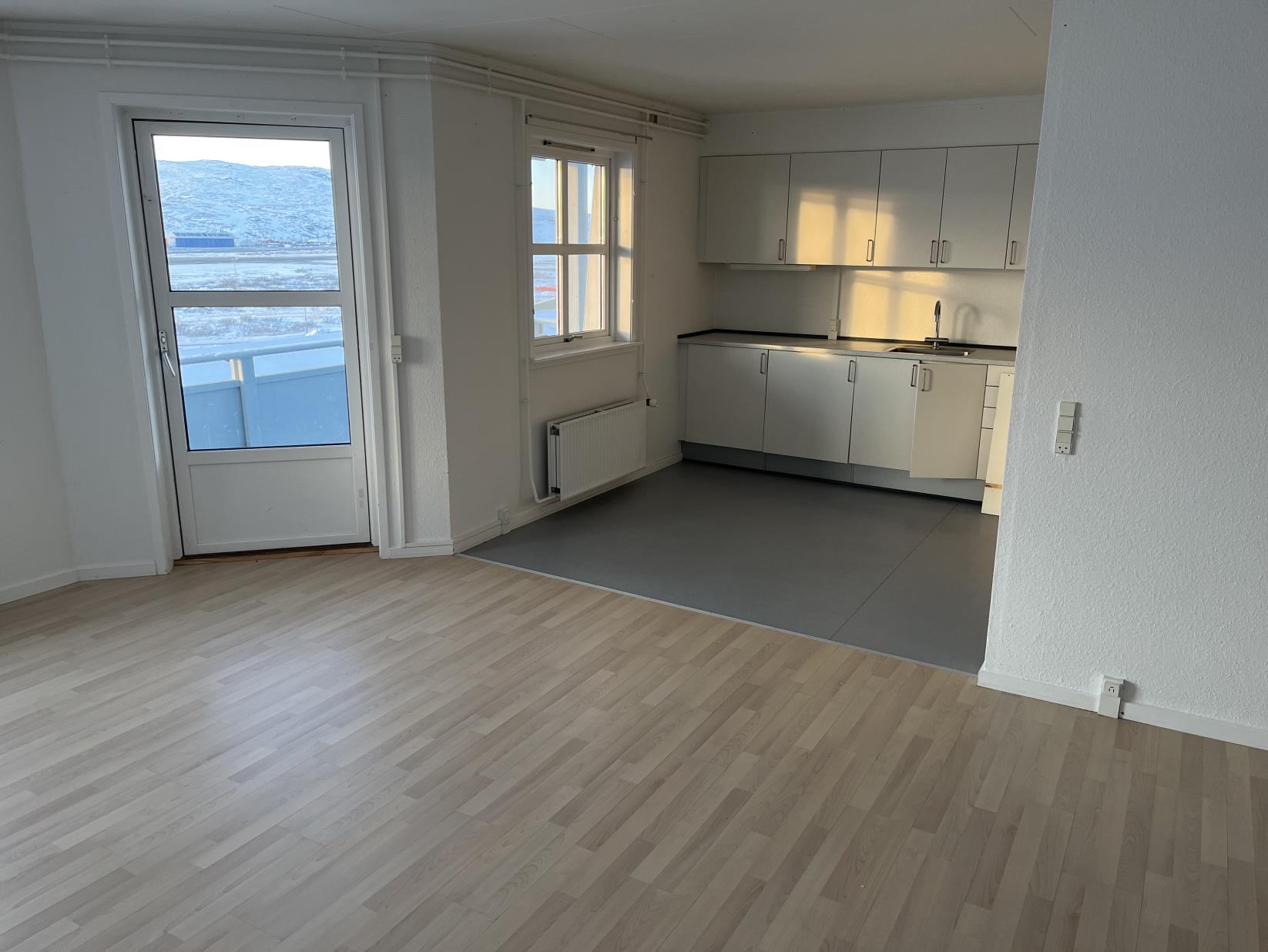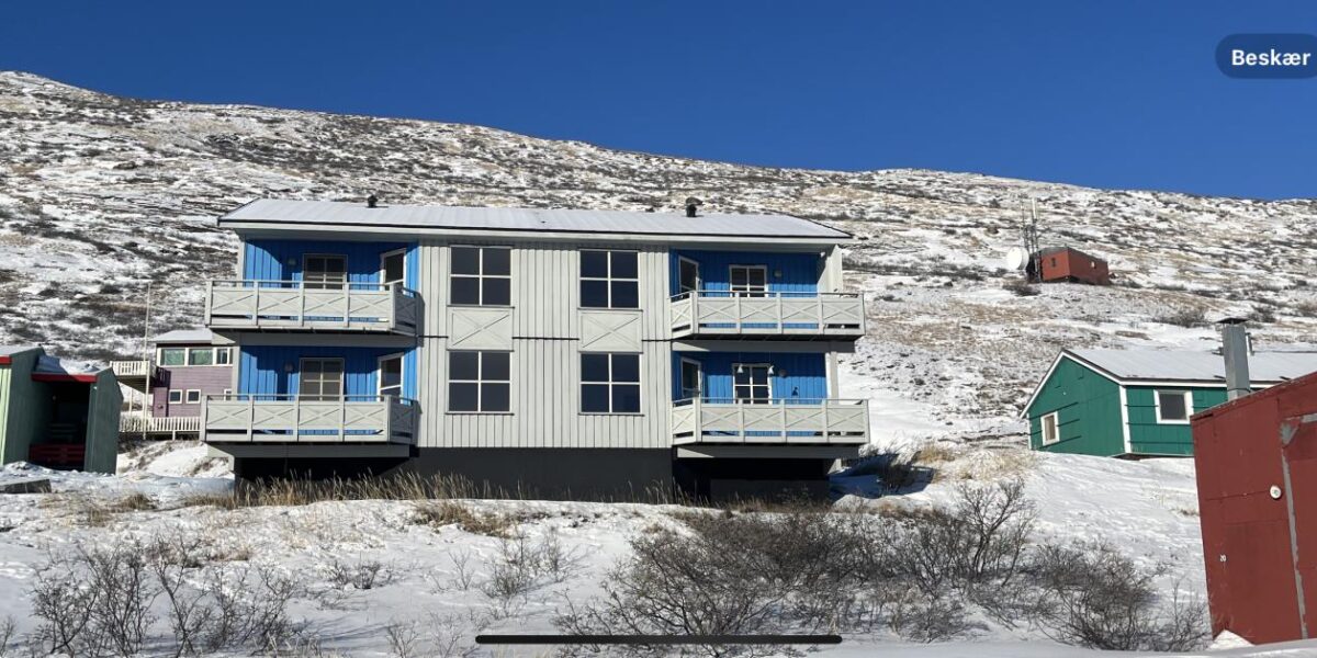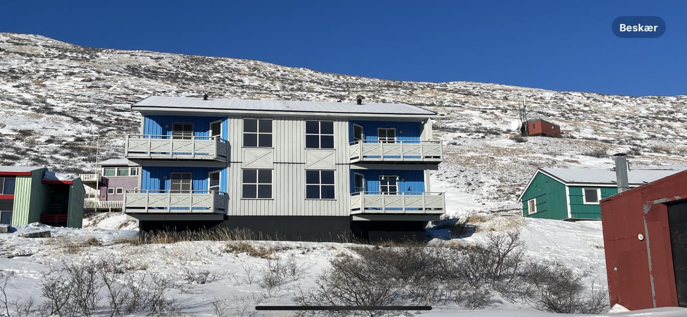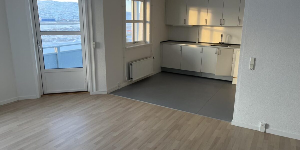 Ejendommen, som er opført af Air Greenland, blev bygget som personaleboliger og indeholder 4 ens og moderne lejligheder, som hver især indeholder; en pæn forgang, et lyst badeværelse med bruseniche og gulvvarme, et stort soveværelse med skabe samt et mindre kammer. Lejlighedens samlingspunkt er det store og meget lyse køkken-alrum som har flot lysindfald og har god plads til en velfungerende møblering. Og så er der udgang til en superdejlig stor altan med flot udsigt og god plads til grillen.