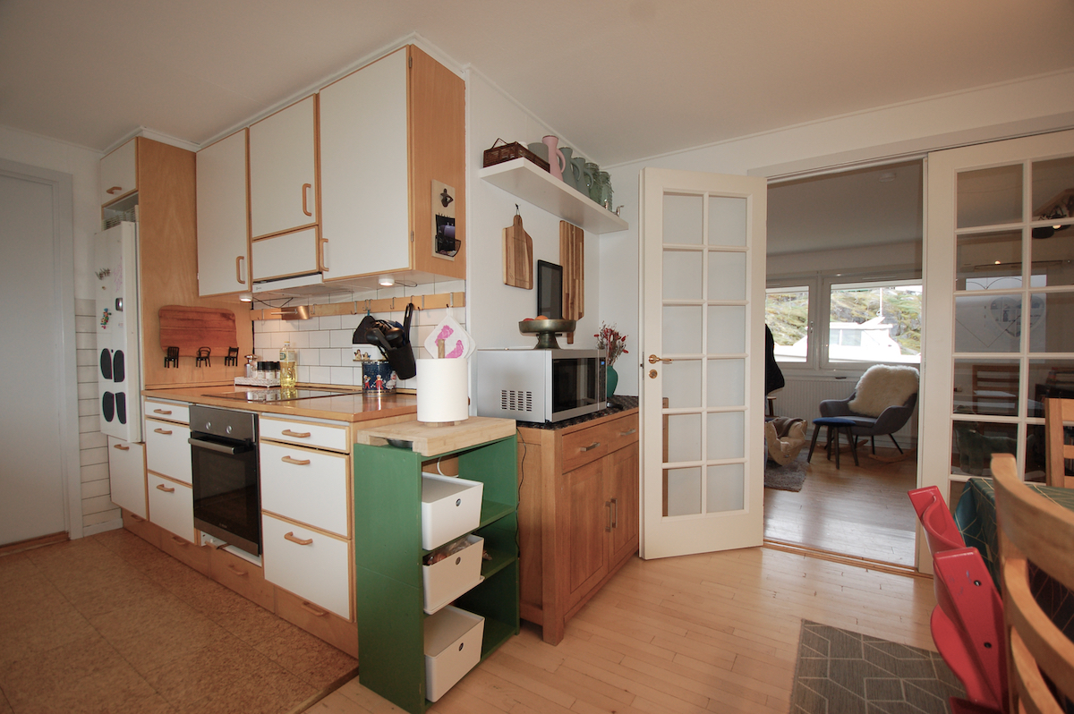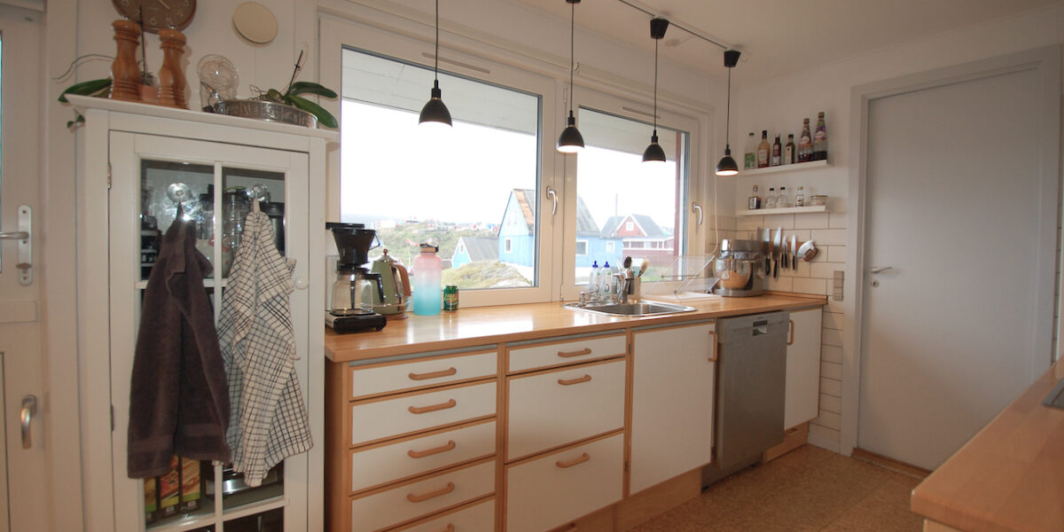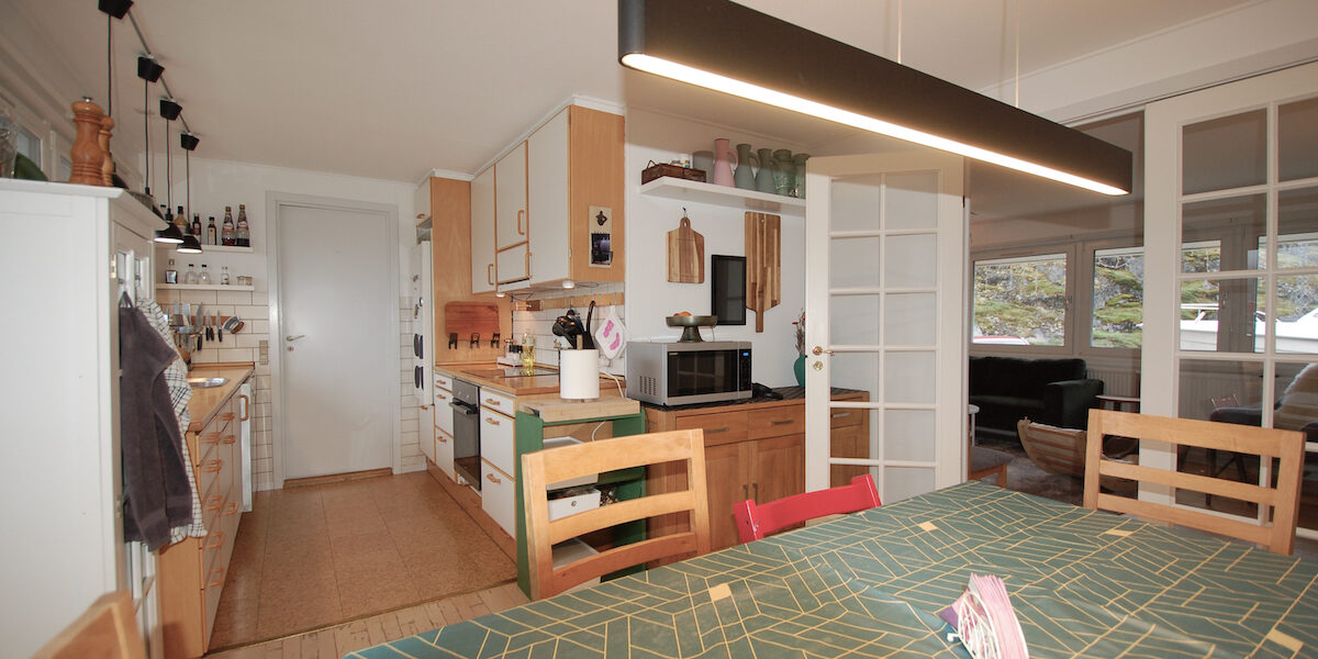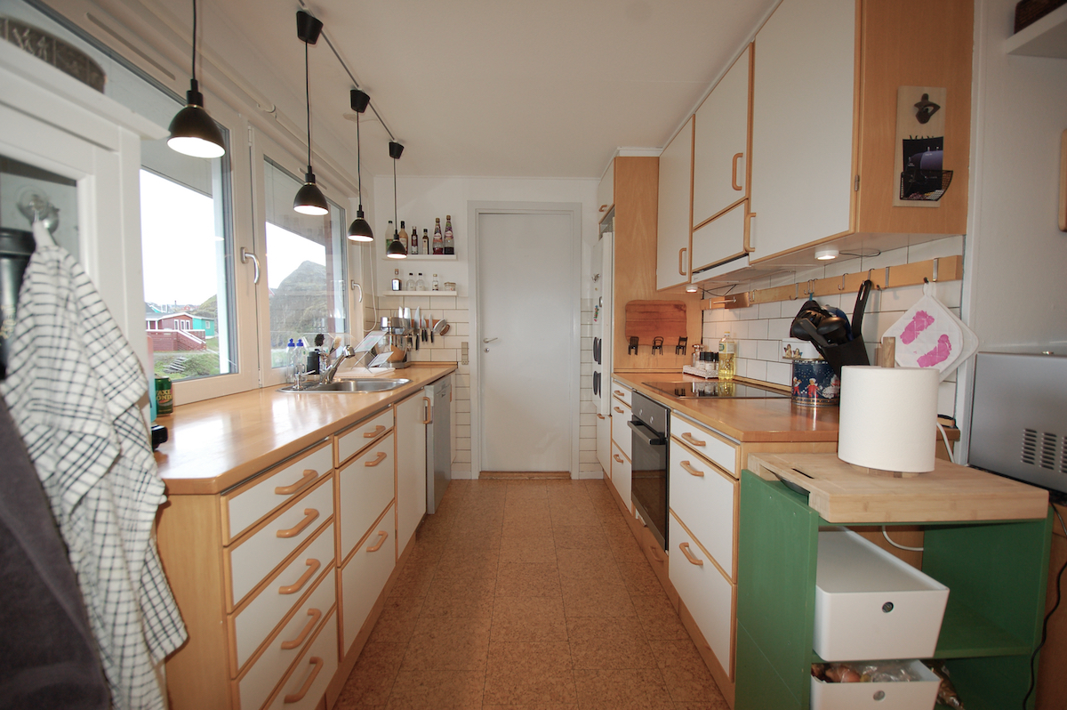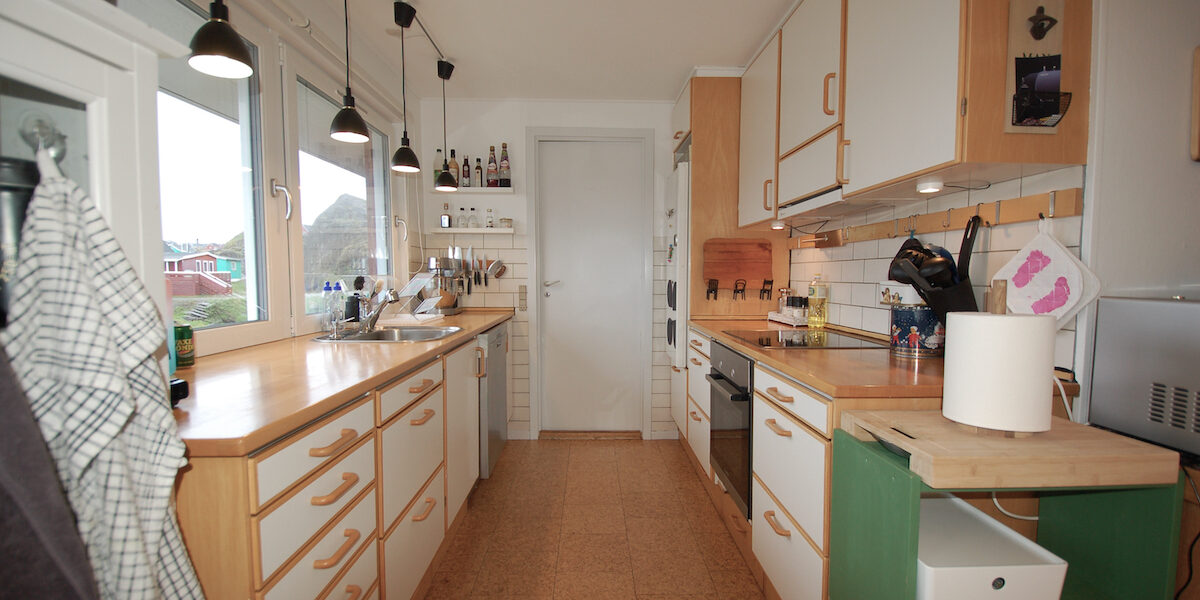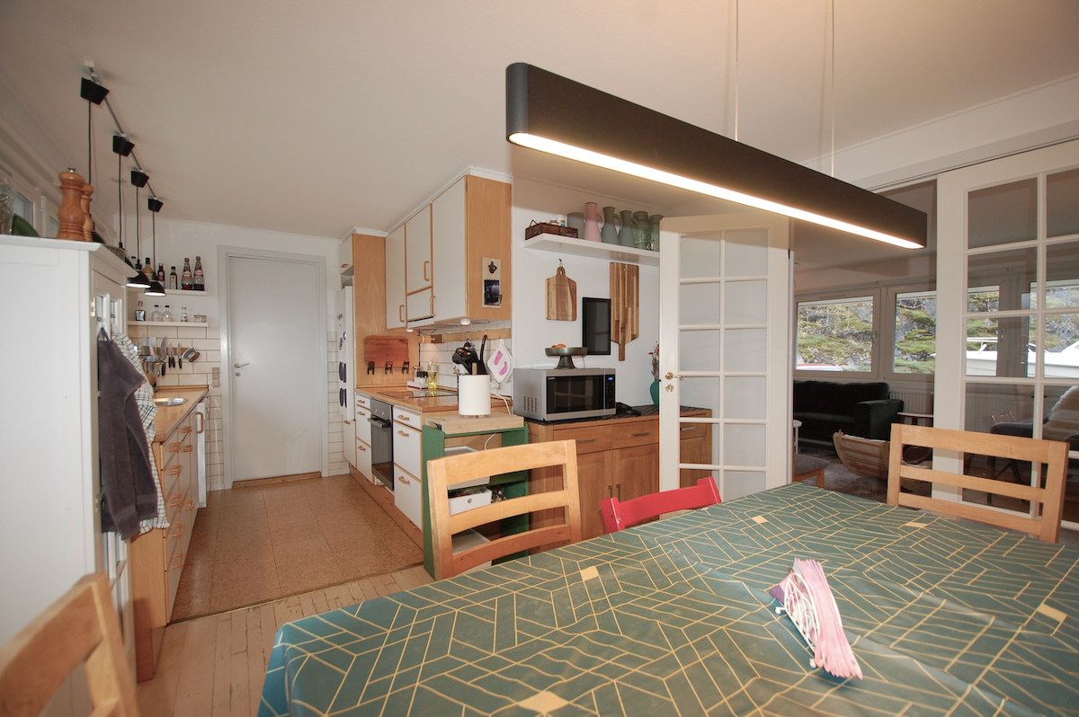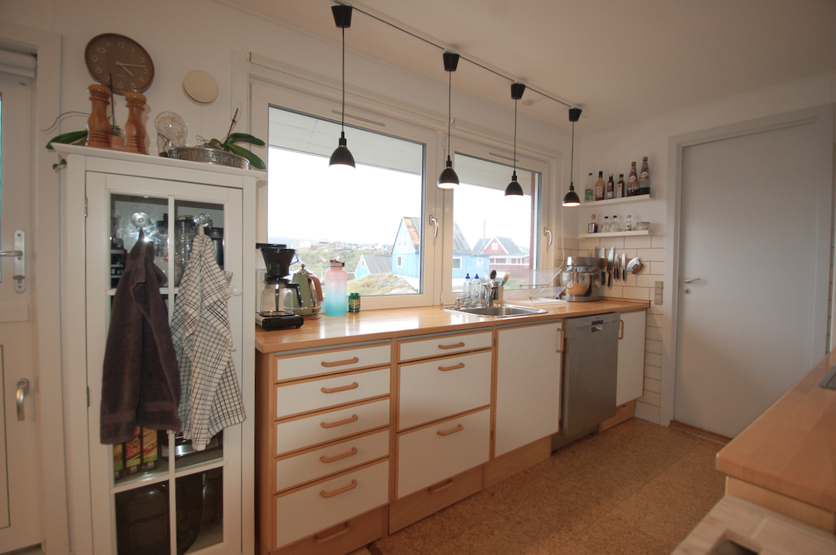 - Stort og lyst køkken-alrum med moderne køkkenelementer og gode hårde hvidevarer