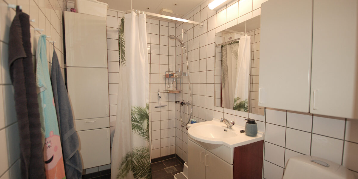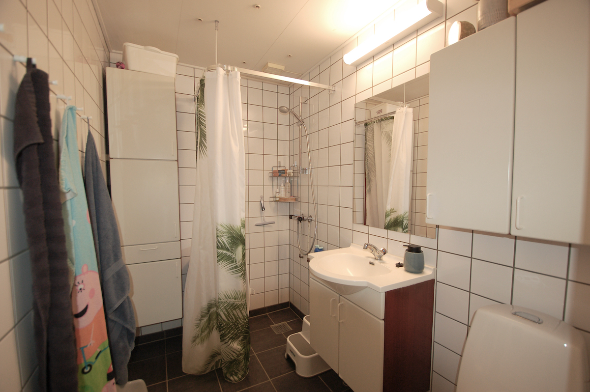 - Lækkert, renoveret badeværelse med gulvvarme, bruseniche, klinker fra gulv til loft og god skabsplads